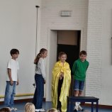 Dit schooljaar willen we allemaal een superheld worden op 't hoge. Hiervoor moeten we 5 opdrachten volbrengen. Bij de start van het schooljaar werd het thema voorgesteld.