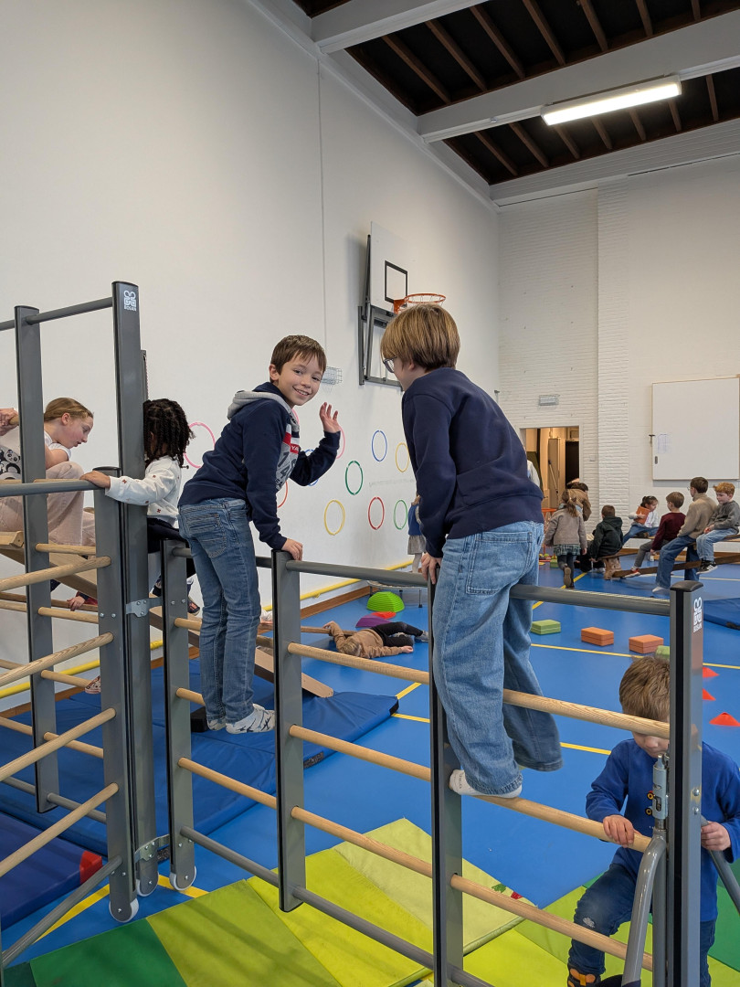 Samenwerken is een kwaliteit van een superheld. Onze kinderen moeten bewijzen dat ze kunnen samenwerken. Samen met een leerling van een andere klas hebben ze een parcours moeten afleggen. Het was geen gemakkelijk parcours, de leerlingen moesten samenwerken. Een handje geven, ondersteunen, motiveren, helpen klimmen,...